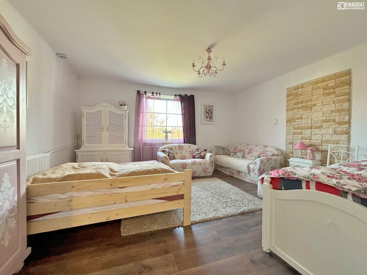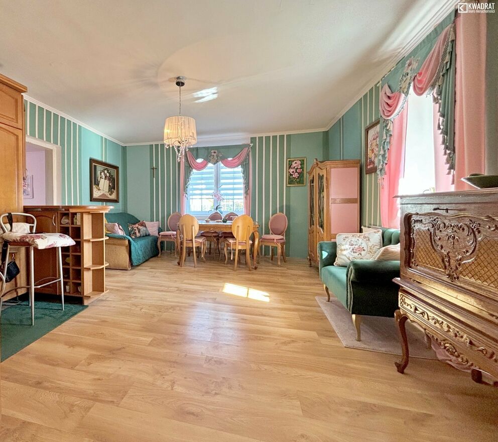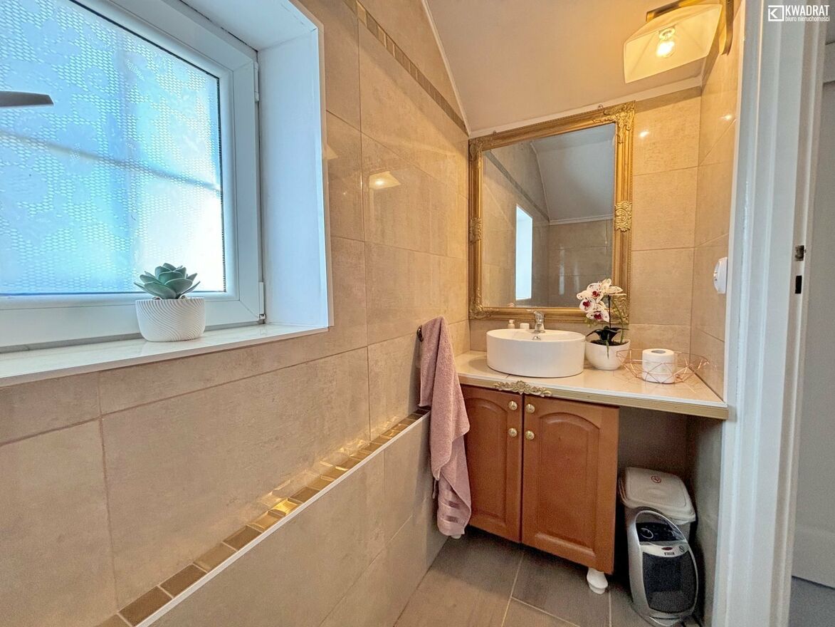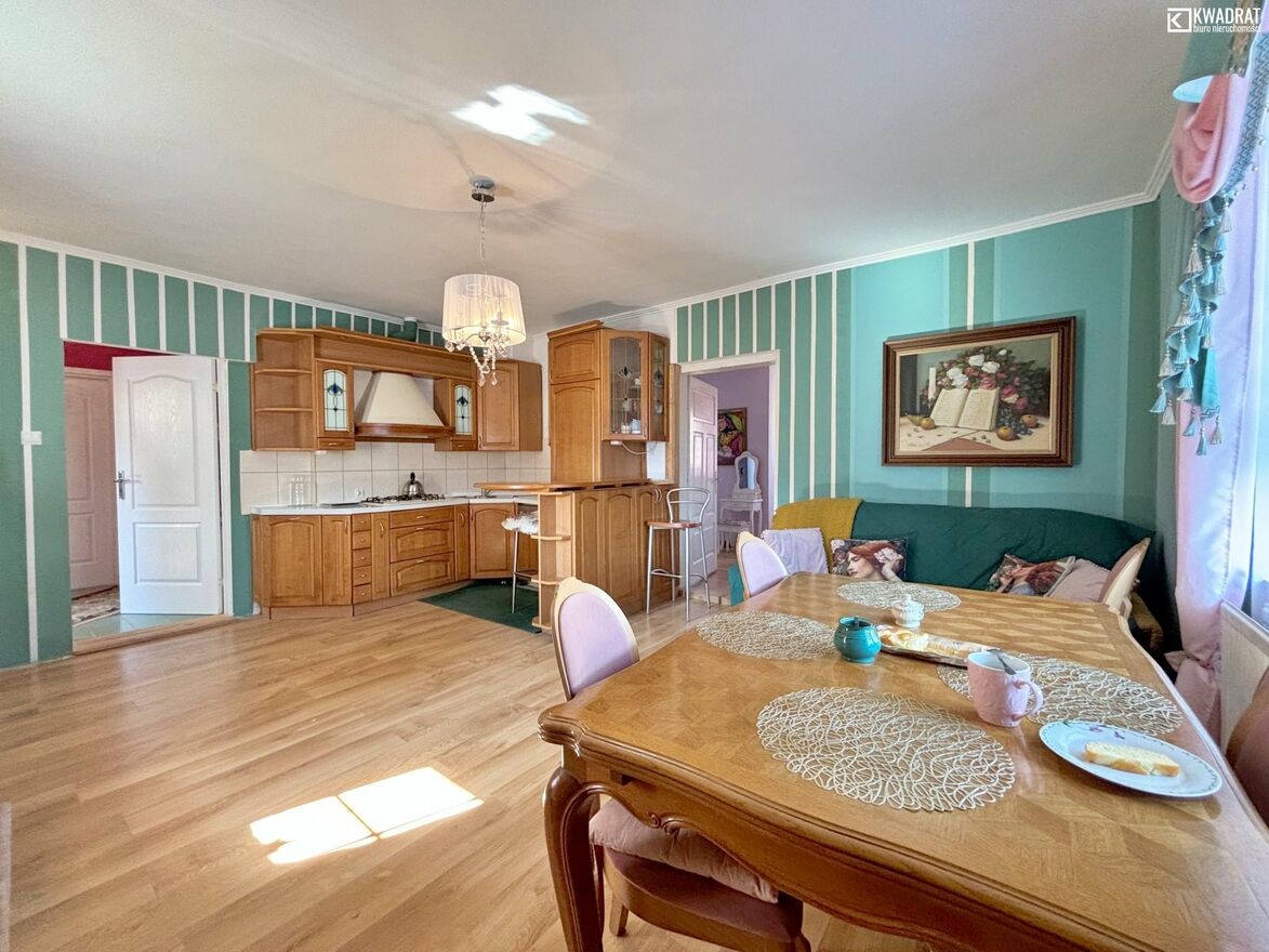 Dom ma powierzchnię użytkową ok. 132 m2. Jest nietuzinkowo wykończony i umeblowany. Powstał na bazie domu z 1965 roku, został zmodernizowany w 2024 roku. Posiada parter i poddasze użytkowe. Na parterze salon z aneksem kuchennym tworzą dużą przestrzeń dzienną. Klimatyczne wykończenie sprawia, że przebywanie tu jest przyjemne. Ogrzewany piecem węglowym. Ciepłą wodę zapewnia bojler elektryczny.
